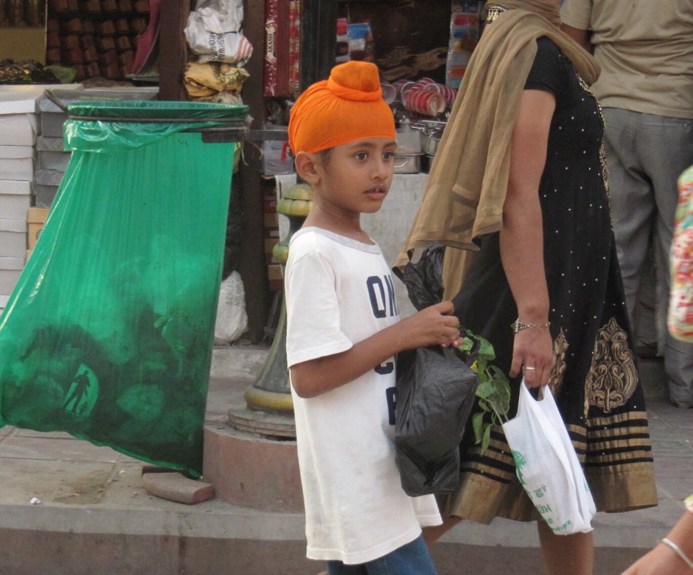Hier in AMRITSAR sehe ich gut gebundene Turbane wohin mein Touristenauge blickt. Und das war nicht immer so. Es ist noch gar nicht solange her, da galt es unter den jungen SHIKS als modern, sich die Haare zu schneiden – eine Abkehr vom Turban sozusagen. So ein Turban ist nicht nicht nur schön anzusehen, es dauert auch ganz schön lange ihn täglich neu zu binden. Ein kleines Kunstwerk, welches fest um den Kopf gezogen, dem Träger zu Beginn mitunter sogar Kopfschmerzen bereitet. Immer wieder sind in den Straßen AMRITSARS auch ältere Shiks mit einem „Turban in Vorbereitung“ zu sehen. Dies ist ein Kopftuch mit einem etwa kinderfaust großem Dutt, in welchem die beginnene Haarlänge verstaut wird. Normalerweise findet sich das ausschließlich bei jungen Buben – verständlich.
