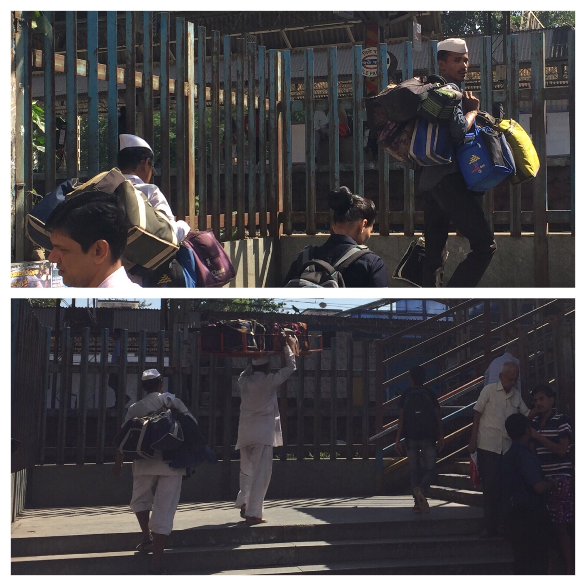 An meinem letzten Tag in MUMBAI sah ich sie dann am Bahnhof VILE PARLE. Die DABBAWALA von MUMBAI. Dabba heißt die indische Lunchbox und Wala bedeutet soviel wie Lieferant (hab ich vom Hostelbesitzer). Man erkennt sie an ihrem weißen Hütchen, Pati genannt. Sie liefern pro Tag run 175.000 Mittagessen aus und ihre Fehlerquote liegt bei 1 pro 6 Millionen Lieferungen. (Quelle: Spiegel Online, Montag 29.07.2013, Dabbawallas in Mumbai) Die DABBAWALA holen den fertig gekochten Lunch von zuhause ab und liefern ihn ins Büro. Nachmittags kommen sie vorbei, um die Lunchbox wieder abzuholen. Ihr Logistiksystem ist einzigartig. Auf den Lunchpaketen befinden sich Markierungen, sie haben Übergabeschnittstellen und als Abholer sowie Officelieferanten fungieren lokalkundige Walas. Die meisten von ihnen sind Analphabeten.
