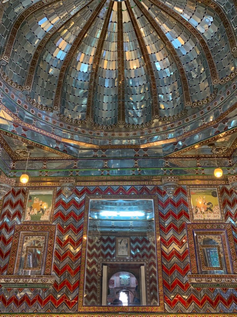 Tag 2 in UDAIPUR / der CITY PALACE. Dieser Palast ist wirklich sehenswert. Hier will man den Touristen nicht einfach nur einen kleinen Teil des Palastes zeigen, sondern auch die Geschichte der Merwar vermitteln. Einem stolzen Herrscherhaus welches es heute noch gibt. Für einige Jahres gab es auch einmal einen sehr erfolgreichen Herrscher, der an Kinderlähmung litt. Seine Hilfsmittel – wie Rollstuhl und Ähnliches – werden hier ganz offen zur Schau gestellt. Die Herrscher durften erst etwas frühstücken, wenn sie die Sonne sehen konnten. Wie praktisch, dass direkt gegenüber dem Frühstücksplatz die Sonne Merwars angebracht ist – lach! Die Palastbesichtigung ist mit 300 Rupien, für das was geboten wird, verhältnismäßig günstig. 50 Ruipien kostet ein Audioguide – auch hier kommt wieder die Gesundheitskarte zum Einsatz.