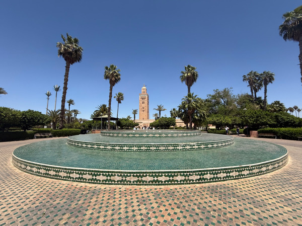 Direkt beim Jemaa el-Fna ist die Koutoubia Moschee. Dahinter befindet sich ein öffentlicher Garten zum schattigen Entspannen.