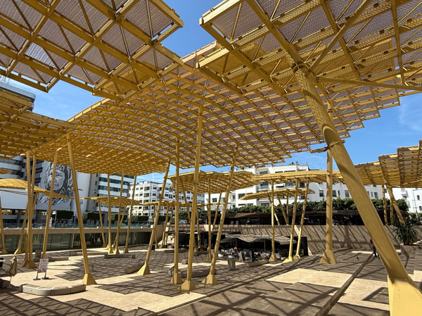 Es ist nachmittags an meinem letzter Tag in Rabat und ich sitze – wie jeden Tag um diese Zeit – im Café Marché Central. Sie haben hier einen sehr guten Cappucino. Mein leckeres Teilchen ist von der Patisserie nebenan. Die Praxis sich im Nachbargeschäft etwas zu holen, ist wohl in ganz Marokko so üblich. Im Café Marché Central sind hauptsächlich Einheimische zu finden. Der Schuhputzer, der gerade vorbeigeht, schaut auf meine Teva-Treter und signalisiert mir lachend, daß er mit mir keinen Umsatz machen kann. In der vorderen Reihe (ich bin gerne in der hinteren) sitzen mehrere Geschäftsmänner. Jeder von ihnen hat seinen Gebetsteppich zusammengerollt dabei. Für einen raschen Tee oder Café wird die Zeit noch reichen, denn gleich ruft der Muezzin laut und deutlich zum Gebet in der Moschee.